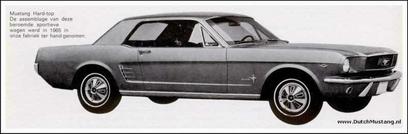 | Arjan also found loads of documentation on Dutch Mustangs. Even mustang brochures in Dutch can be seen on his site. And have a look at the last picture, if that isn't proof that mustangs were built in Amsterdam.. The text says: "Mustang hardtop, the assembly of this famous sporty car started in our factory in 1965" |